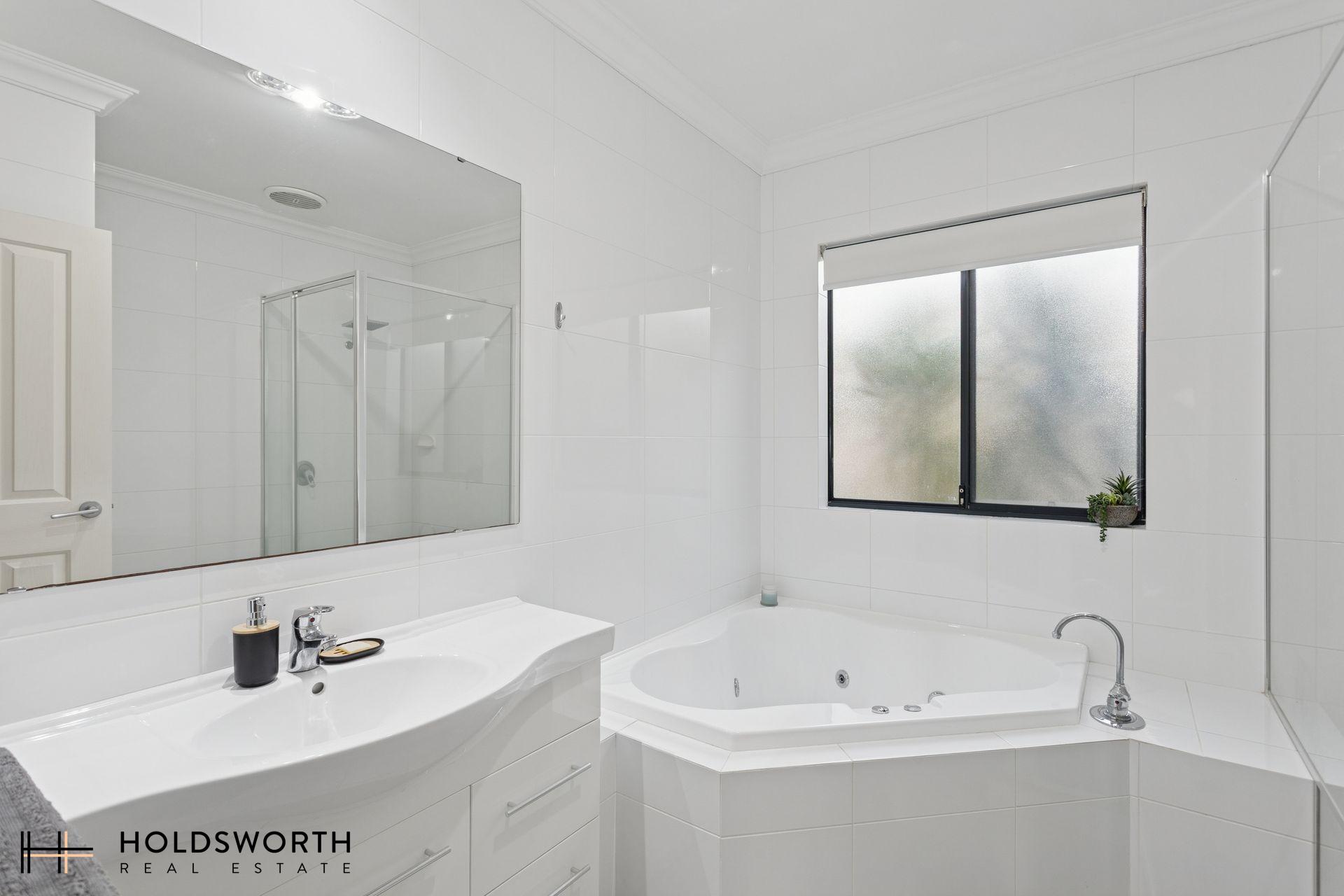 • Ensuite bathroom with spa bath, single basin vanity and shower