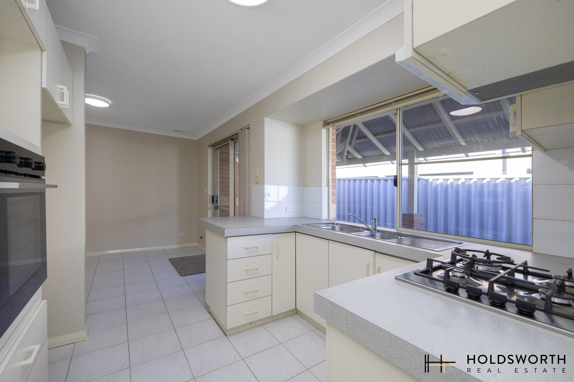 • Kitchen with gas cooktop, double sink, ample benchspace, rangehood and overhead cupboards