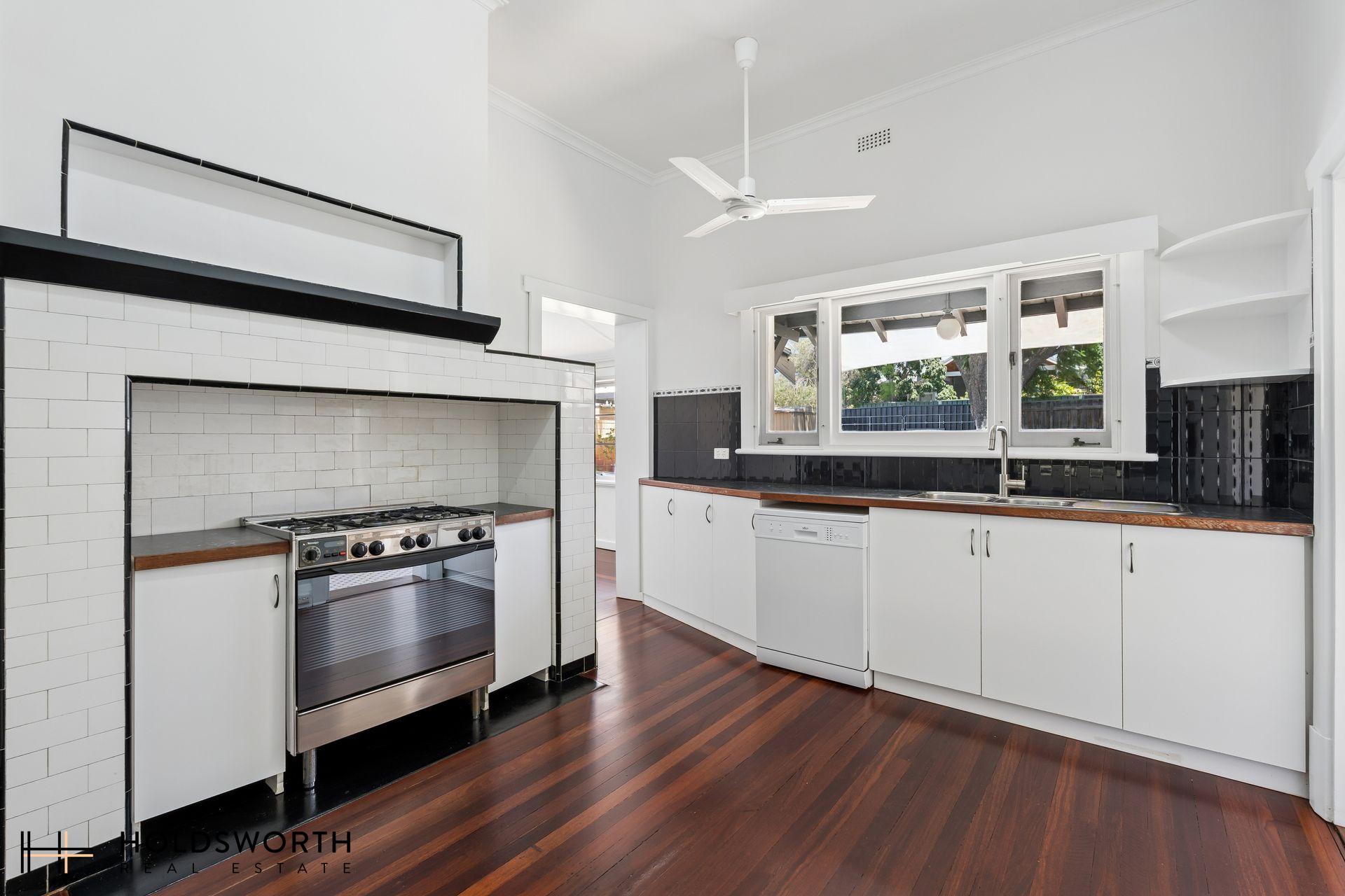 • Restored character kitchen retaining original tiling, Cupboard space, gas stove, oven and dishwasher