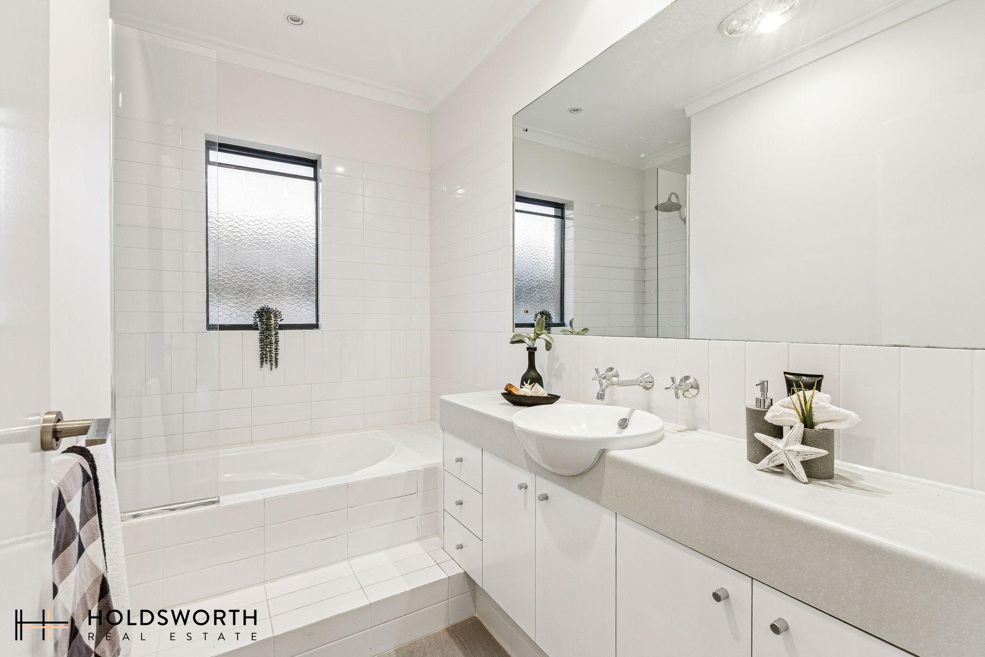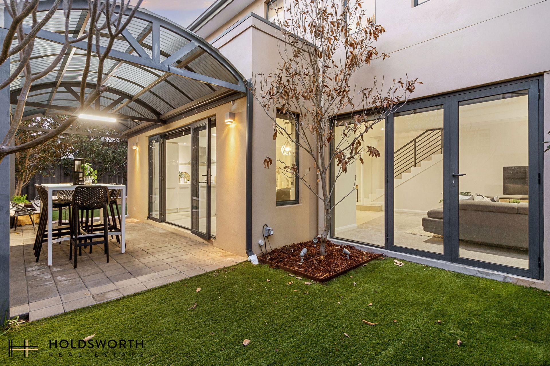 Outdoors, the spacious courtyard is a rare find, combining a paved patio with grassed and garden areas-perfect for pets, children, and weekend BBQs with family and friends. Upstairs, a sizeable landing provides the perfect study nook. The master suite is an ideal retreat with walk-in robes, a balcony, and a private ensuite complete with his-and-hers basins. Two additional bedrooms with built-in robes are serviced by a well-equipped family bathroom. Year-round comfort is assured with recently serviced ducted reverse-cycle air-conditioning, complemented by stylish downlights throughout. The home also includes a sizeable laundry, additional powder room, linen storage, and an enclosed front yard for those with a green thumb. A double remote lock-up garage with extra storage space rounds out the offering.