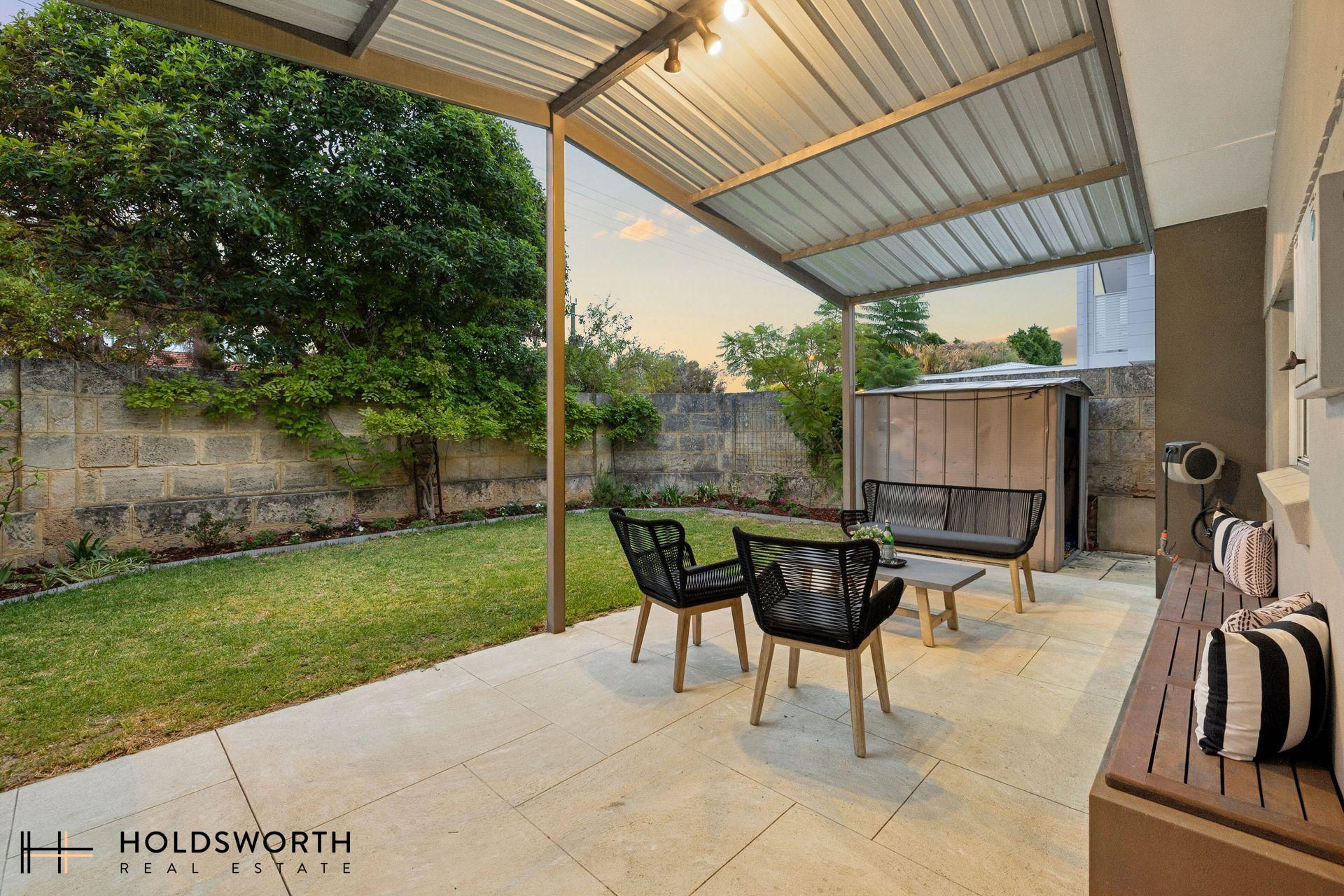 Outside, the home truly shines with not one but two private courtyards. The huge front courtyard offers a paved patio area surrounded by lush grass and manicured gardens, creating a private sanctuary perfect for entertaining or relaxing. The rear courtyard provides an additional outdoor space ideal for summer dinners and BBQs. A large double carport with additional parking space completes the package. Perfectly positioned with convenient access to Woodchester Reserve, Mid Century Café, Flinders Square Shopping Centre, the Western Australian Golf Club, and public transport, with the Perth CBD just a short drive away, this is a rare lifestyle opportunity not to be missed.