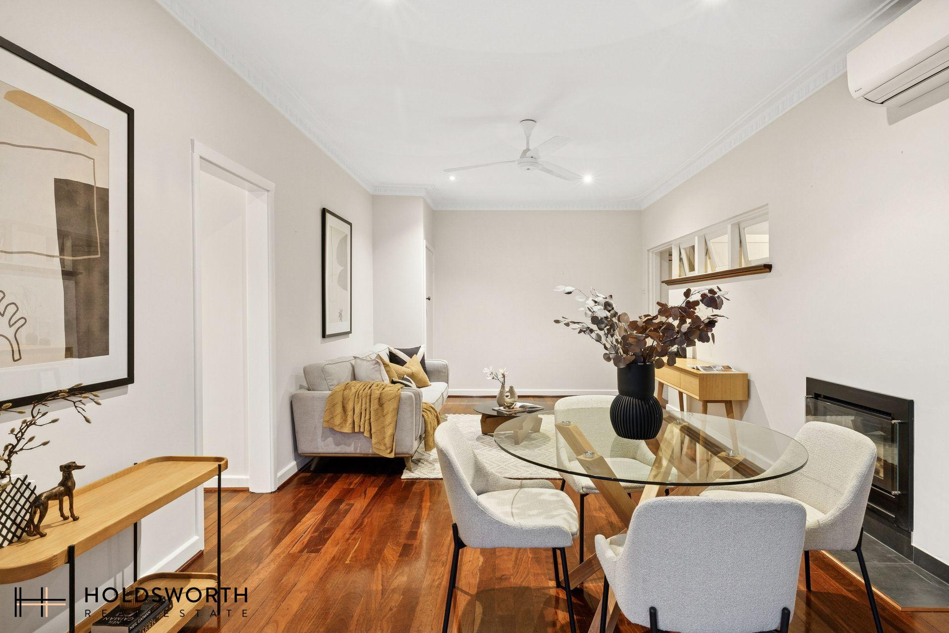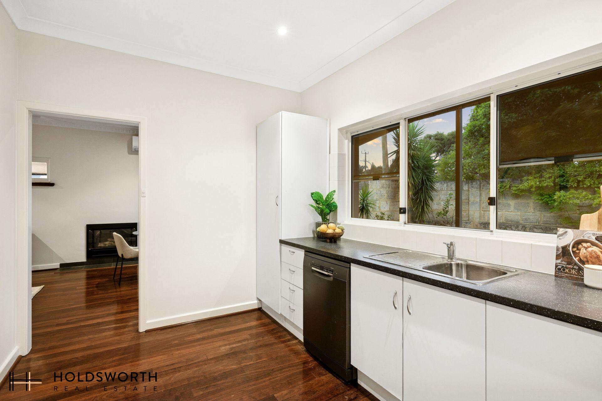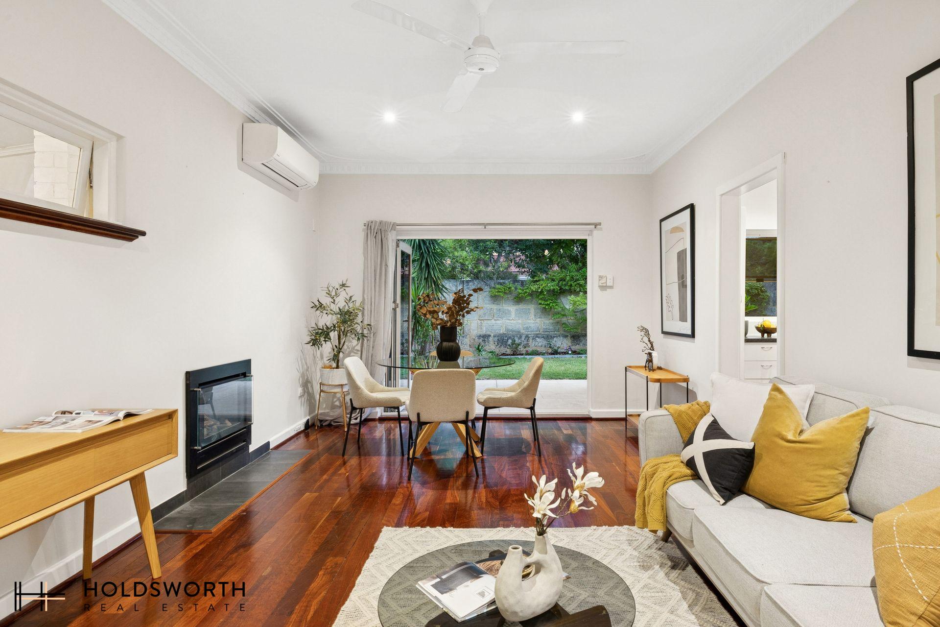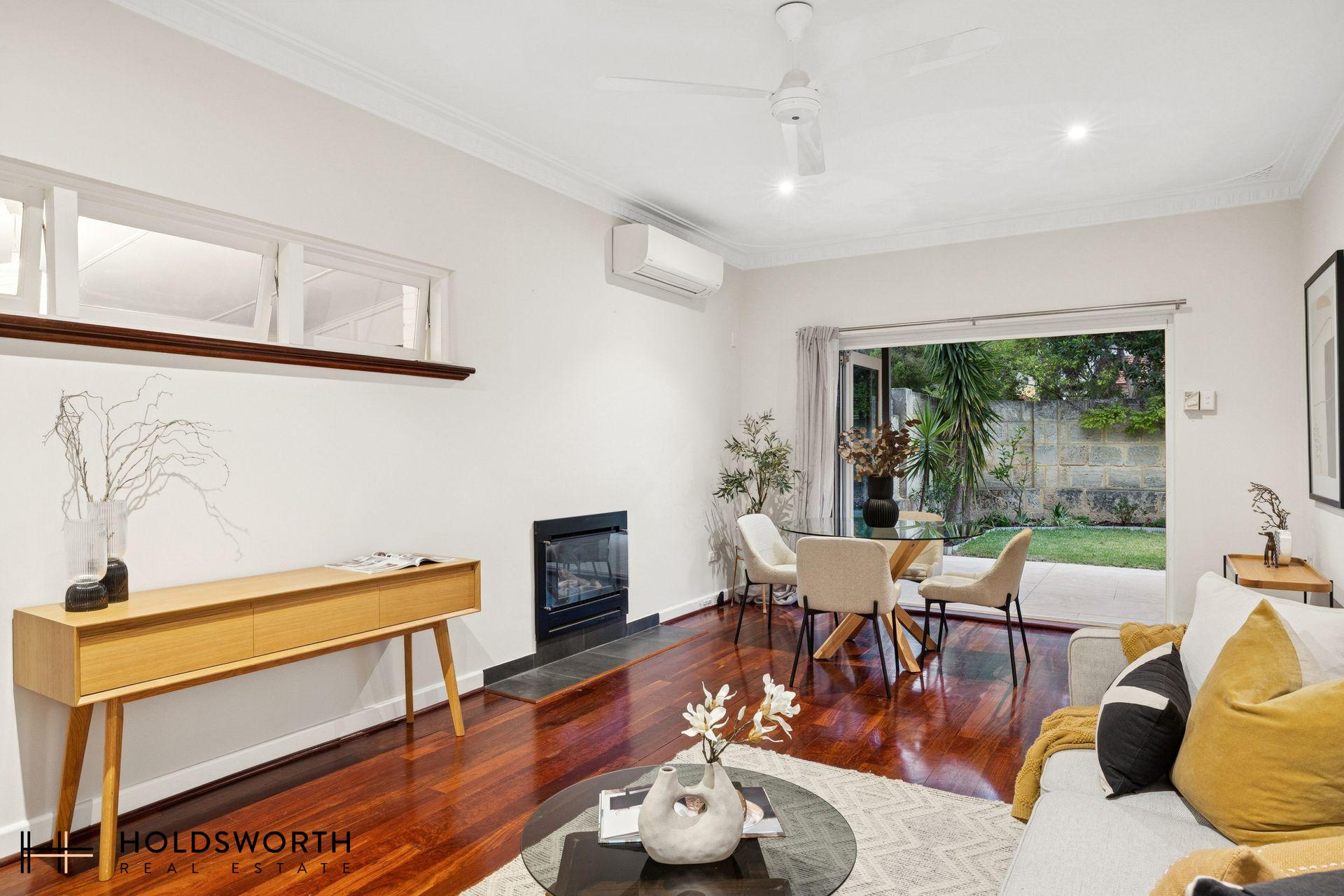 A rare opportunity to secure a charming street-front character home that perfectly blends timeless elegance with modern comfort, all set on a generous 350sqm survey-strata lot with ample outdoor space for kids and pets to play. Step inside to discover a spacious open-plan living and dining area showcasing gleaming Jarrah floorboards, high ceilings, LED downlights, reverse-cycle air conditioning, and a cosy gas fireplace, creating a warm and inviting atmosphere year-round. Full of character yet thoughtfully updated, the home offers the perfect balance of charm and practicality.