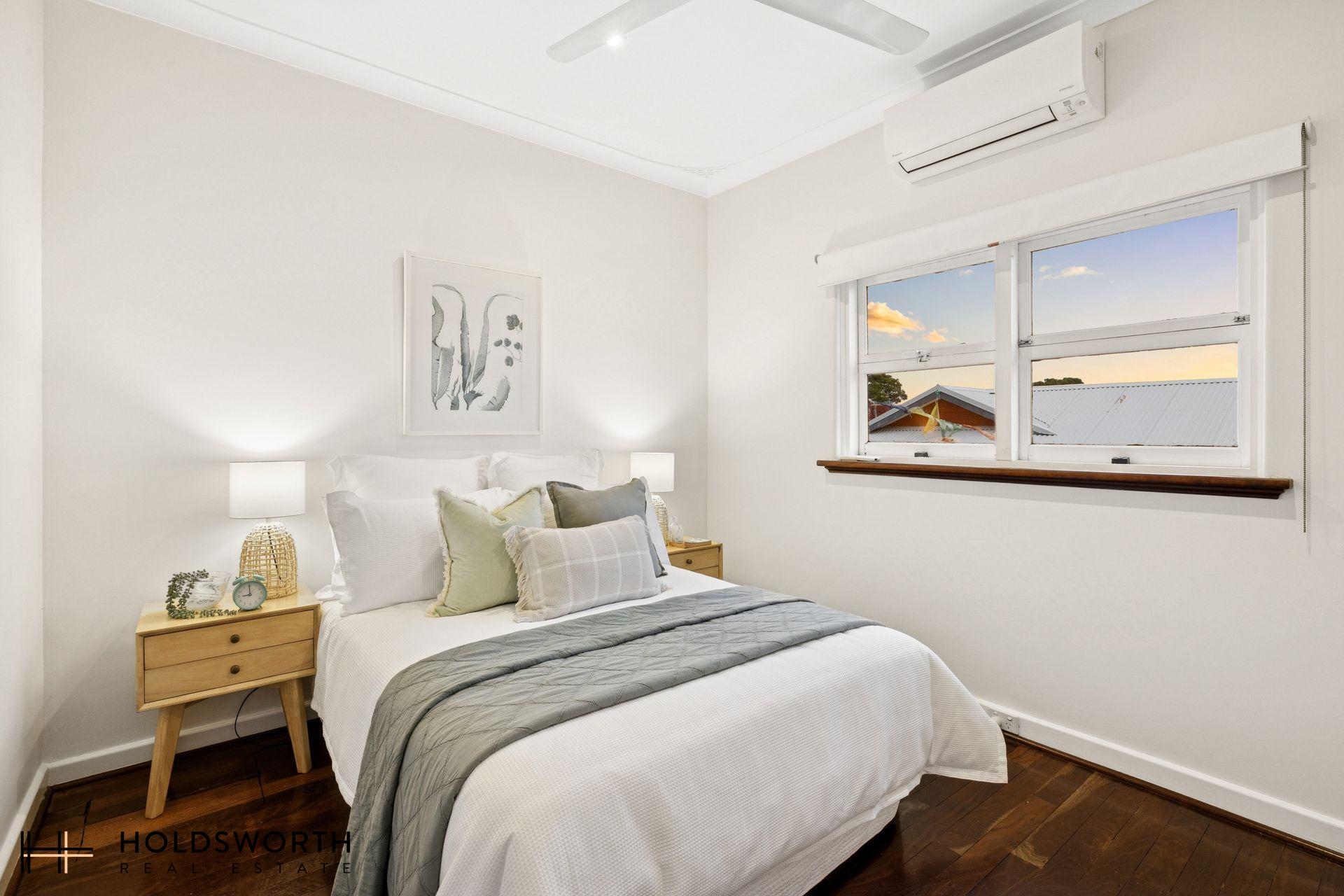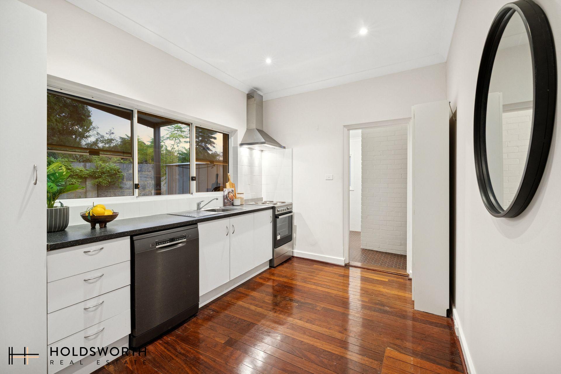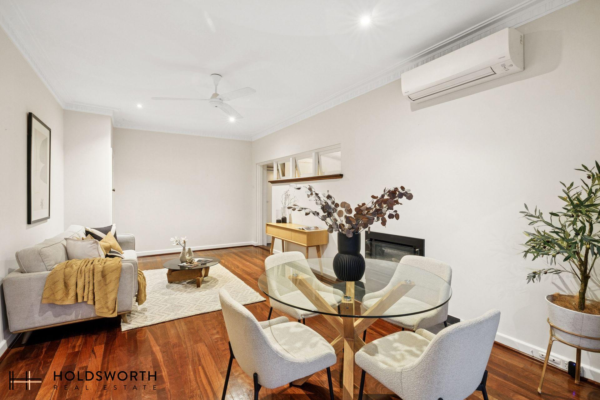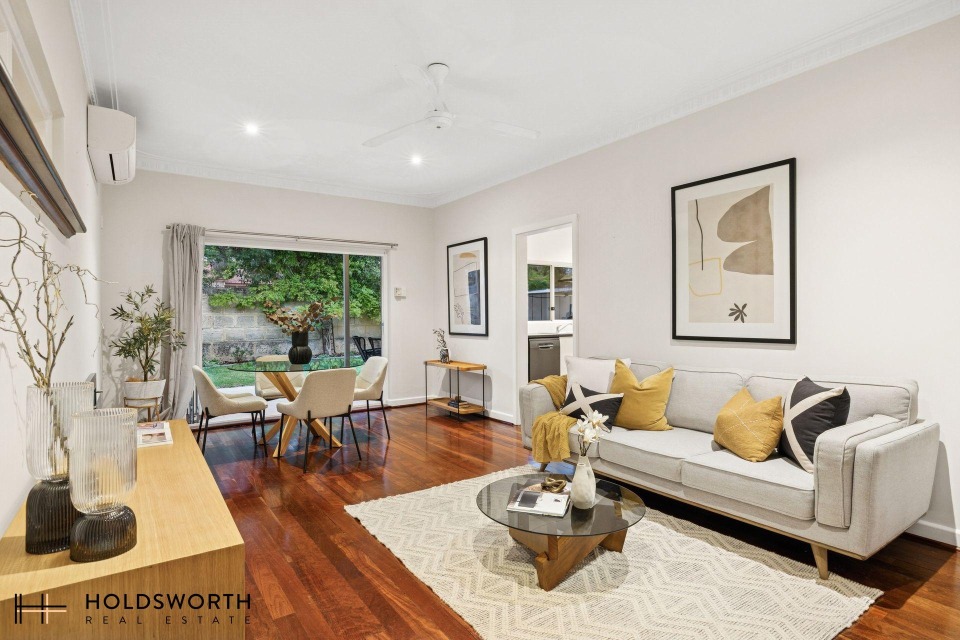 A rare opportunity to secure a charming street-front character home that perfectly blends timeless elegance with modern comfort, all set on a generous 350sqm survey-strata lot with ample outdoor space for kids and pets to play. Step inside to discover a spacious open-plan living and dining area showcasing gleaming Jarrah floorboards, high ceilings, LED downlights, reverse-cycle air conditioning, and a cosy gas fireplace, creating a warm and inviting atmosphere year-round. Full of character yet thoughtfully updated, the home offers the perfect balance of charm and practicality.