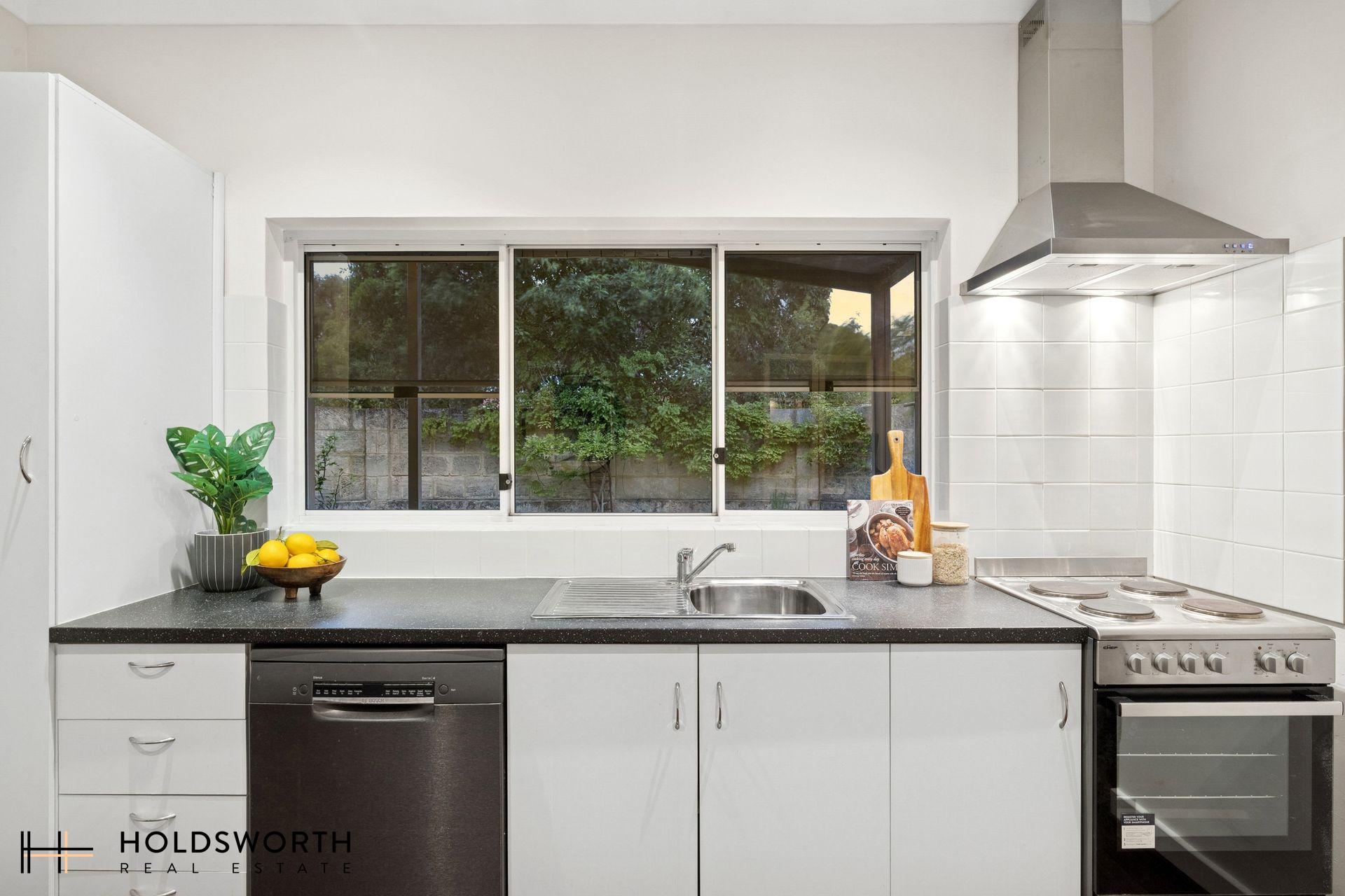 • Well-equipped galley-style kitchen with leafy outlook