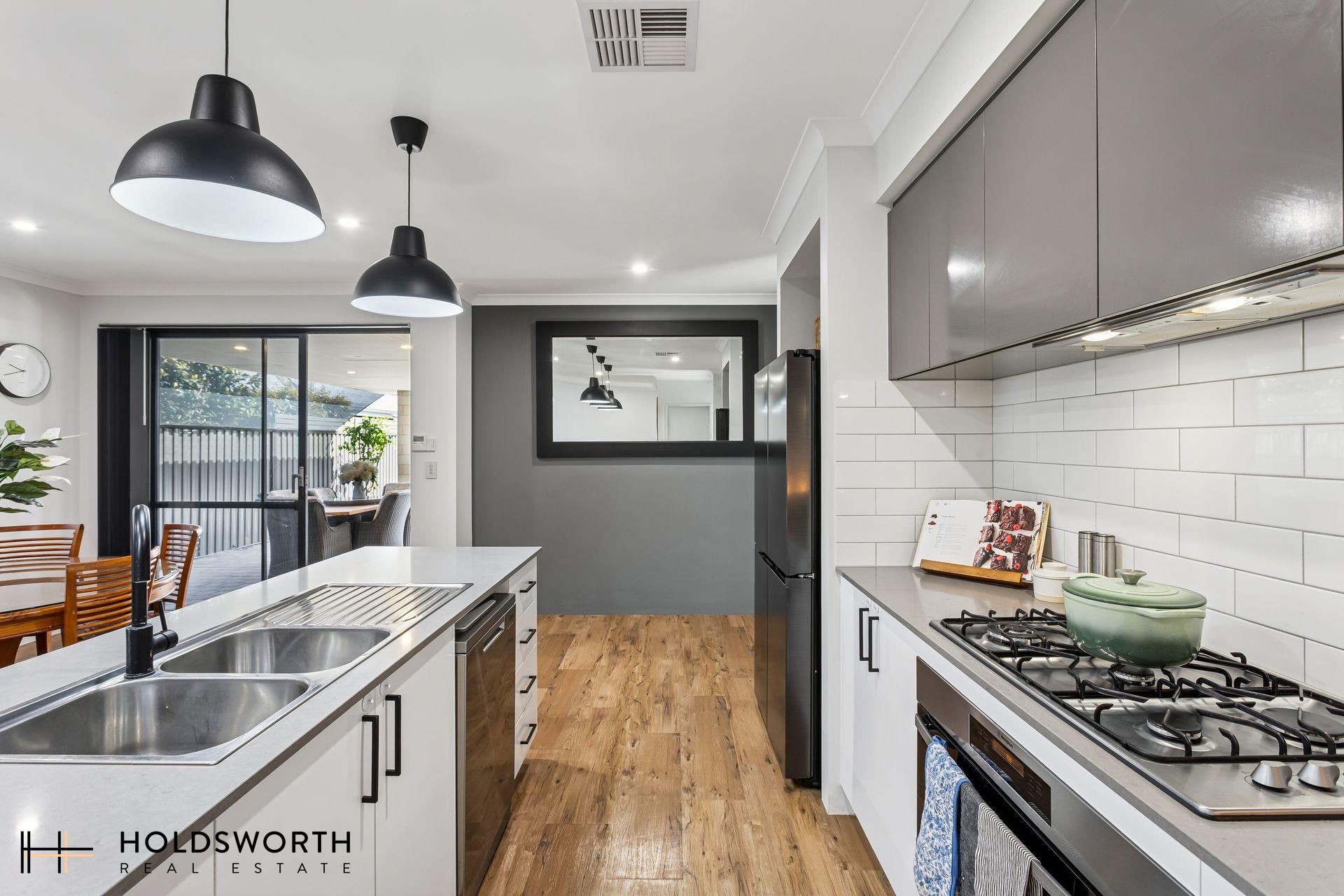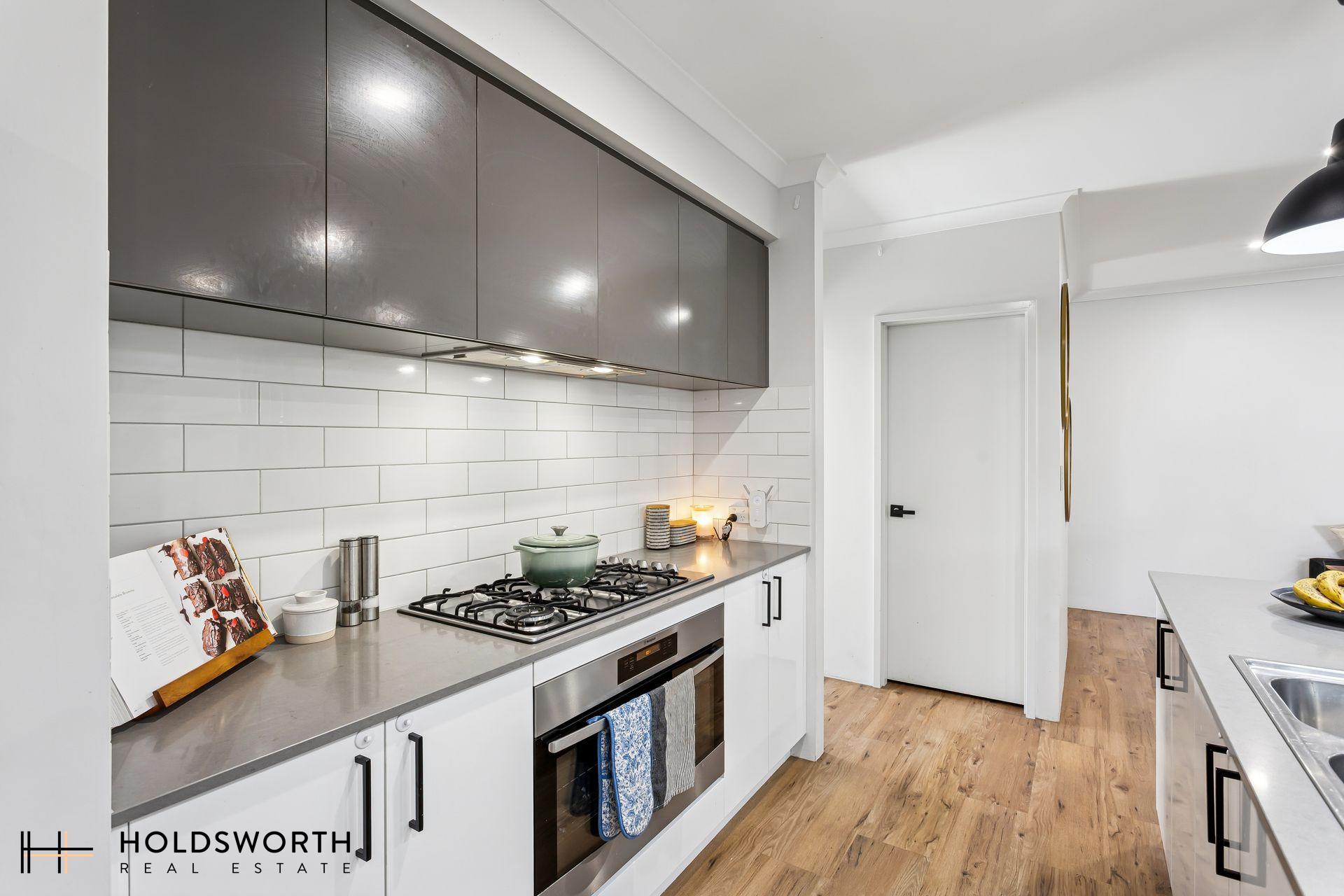– Modern kitchen with 900mm gas cooktop, oven, and rangehood