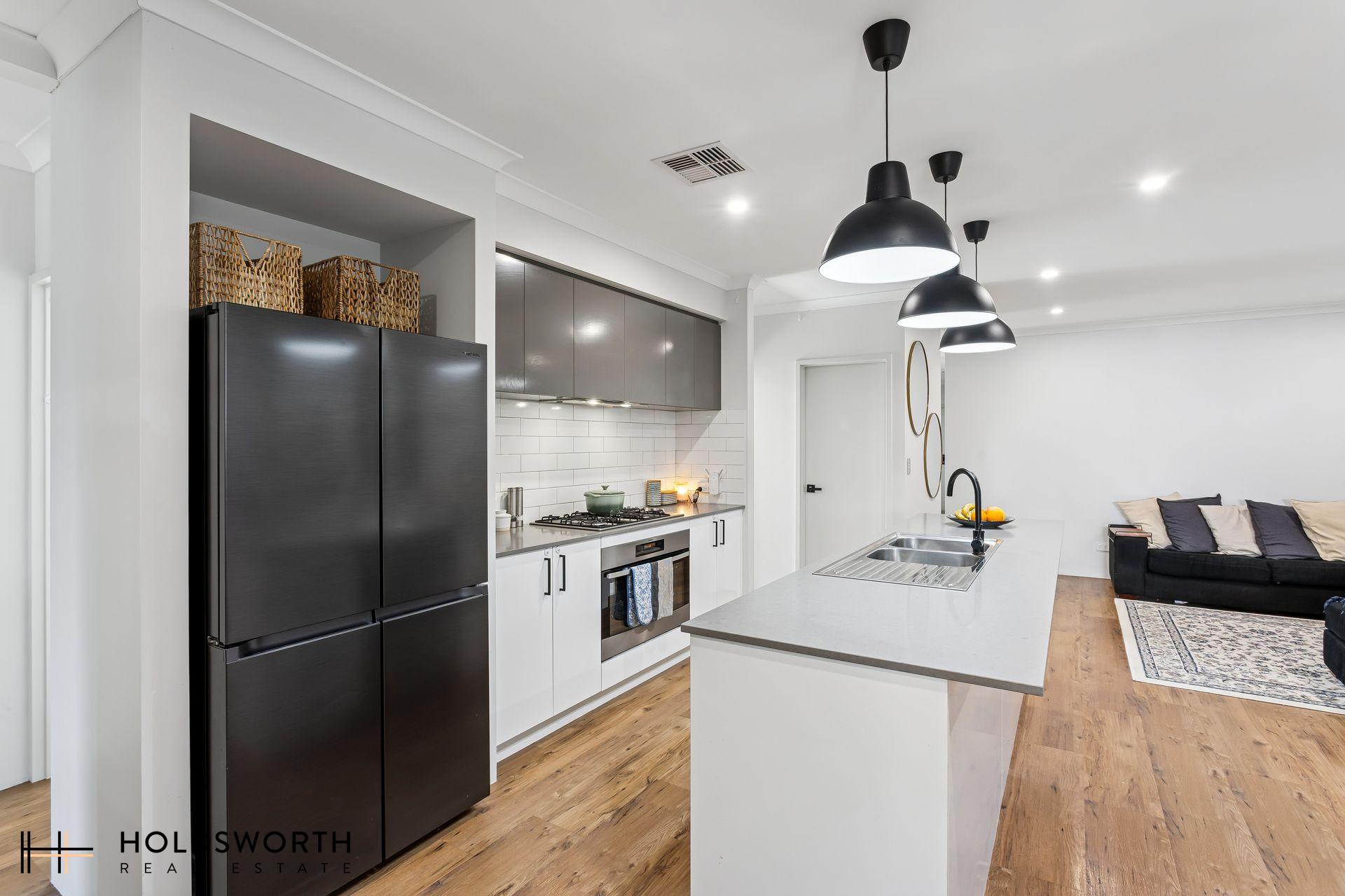 The sleek modern kitchen will impress with its 900mm gas cooktop, oven, rangehood, ample pantry, and large fridge recess – a dream for home chefs. Quality finishes and low-maintenance design continue throughout, with hybrid flooring, tiled wet areas, and a beautifully presented outdoor area made for easy living.