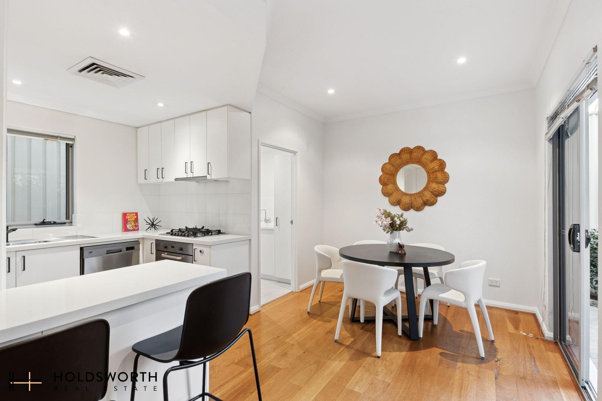 This beautifully finished townhouse combines quality craftsmanship with effortless sophistication. From the moment you step inside, you’ll be greeted by a sense of space and warmth, enhanced by rich Blackbutt timber flooring and an abundance of natural light. The flowing layout offers multiple living zones including a spacious family and dining area downstairs, complemented by an additional living room upstairs – perfect for relaxing or entertaining in style.