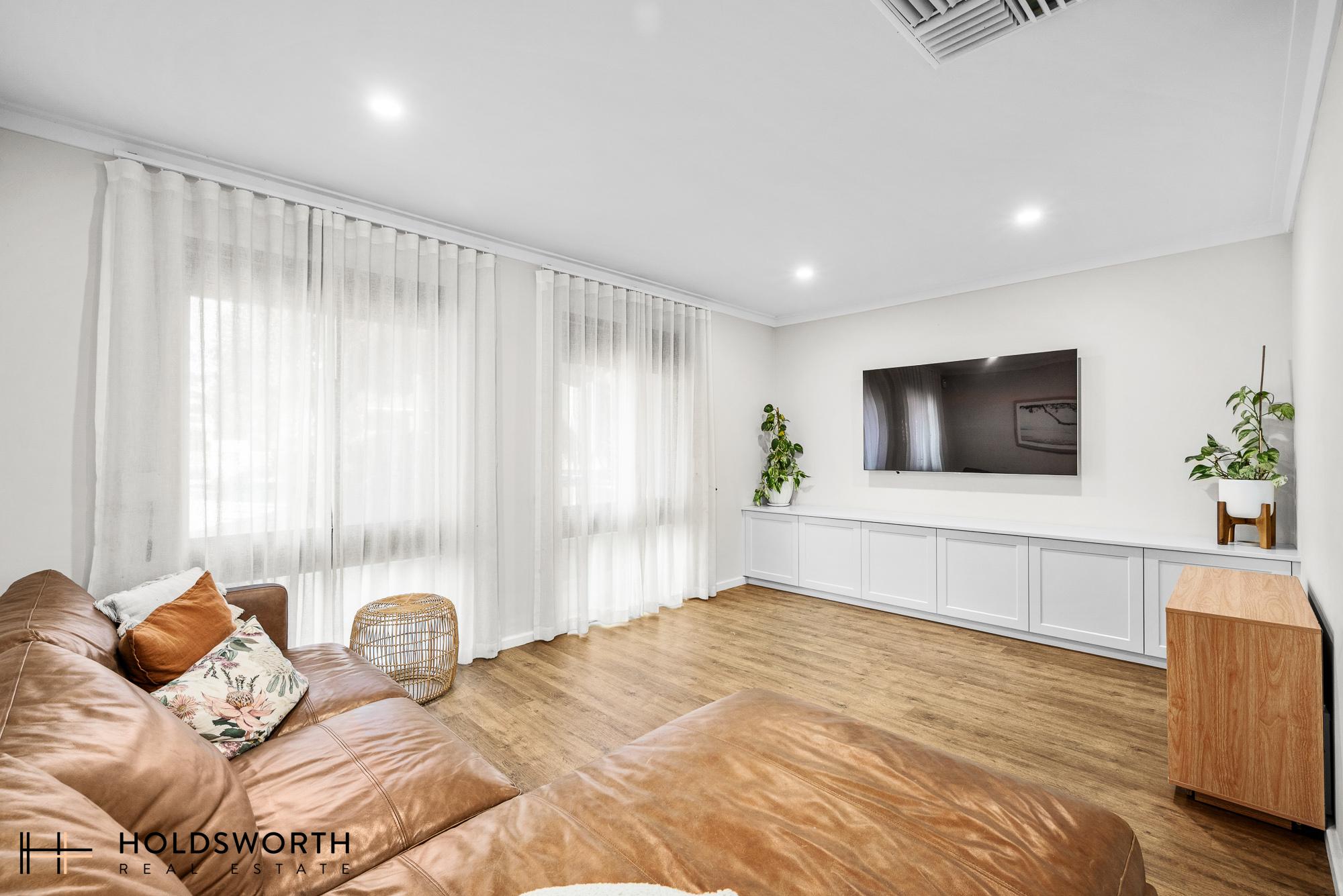 Perched proudly on a corner block, this beautifully renovated family home delivers space, style, and comfort in a highly convenient location. The light-filled open-plan living and dining area creates the ideal setting for everyday living and entertaining, while the chef’s kitchen is ready for culinary adventures with quality AEG appliances, ample storage, and generous bench space.