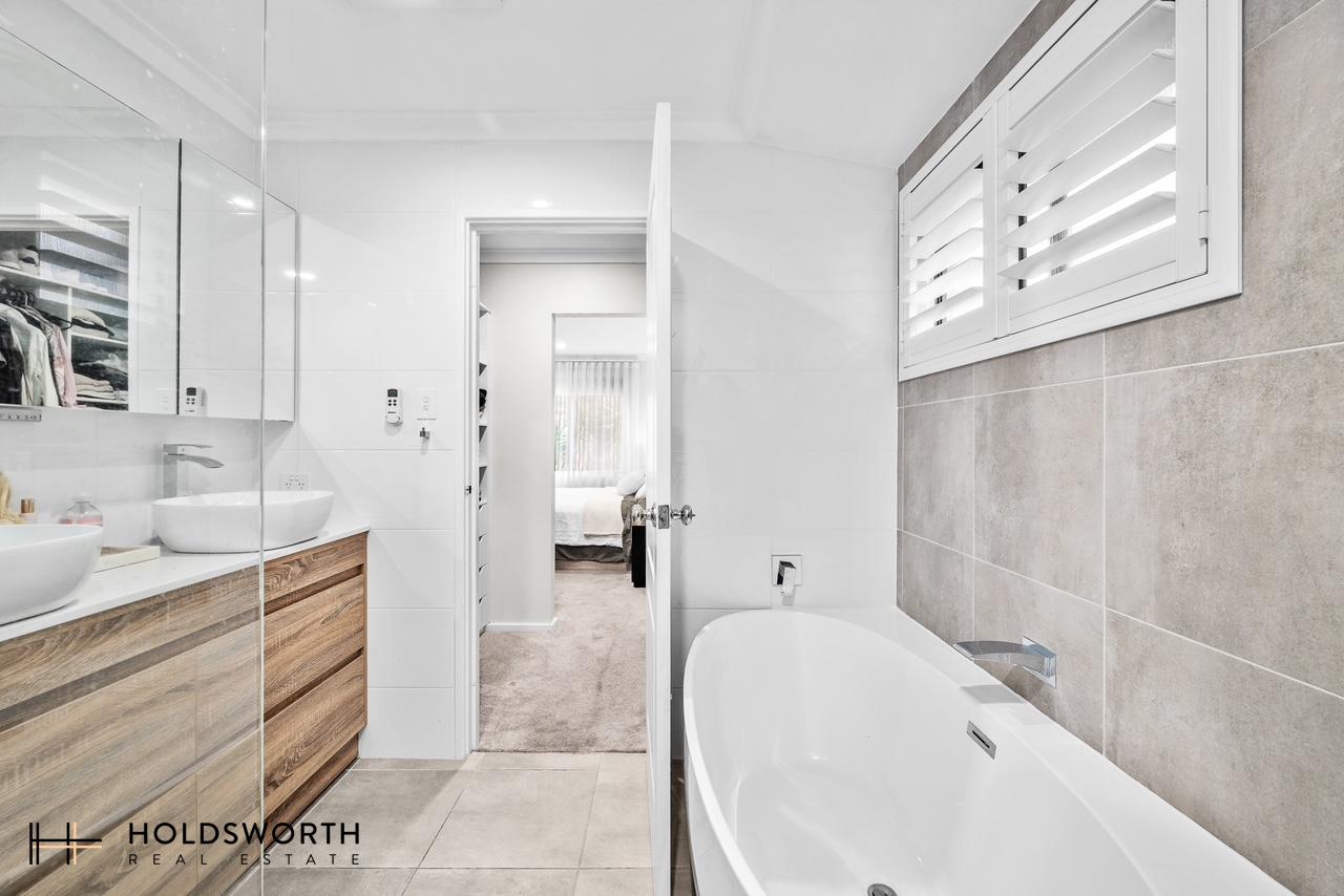 The master bedroom is a true private retreat, complete with reverse-cycle air conditioning, walk-in robe, and a stylish ensuite featuring his and hers basins and full-height tiling. The second and third bedrooms are well sized and include built-in robes, ideal for growing families or guests.