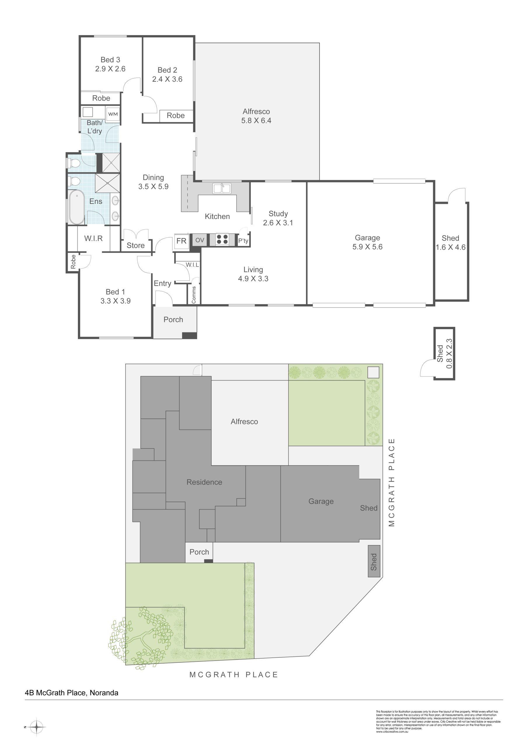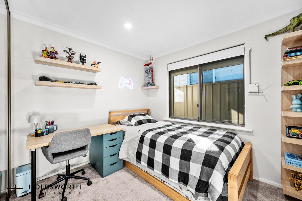 A large separate lounge with built-in TV cabinetry provides the perfect retreat for movie nights or relaxation, complemented by an additional study for those working from home. LED downlights throughout add a modern touch of class, while the functional layout ensures excellent separation between living and sleeping zones.